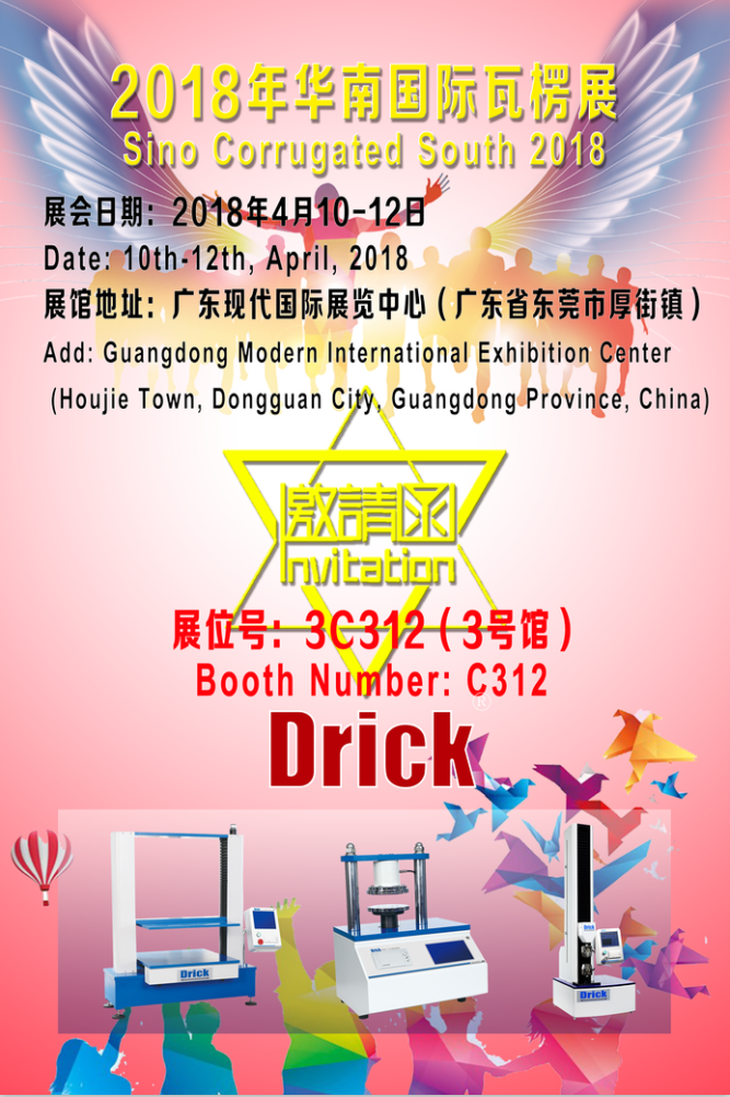 山東德瑞克儀器有限公司成立于2004年致力于造紙包裝檢測儀器15年2018華南國際瓦楞展是全球專業瓦楞設備、耗材及技術展...