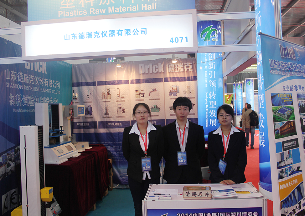 展會上,山東德瑞克用專業的品質和熱情洋溢的服務態度迎接每一位到訪的客商,集中向客人介紹并現場演示了山東德瑞克儀器有限公司在橡塑塑料應用行業的電子拉力試驗機、擺錘沖擊機、壓縮試驗儀等質量檢測產品。大氣簡約的機器外觀和流暢智能化的機器性能贏得現場眾多客戶的一致好評。
