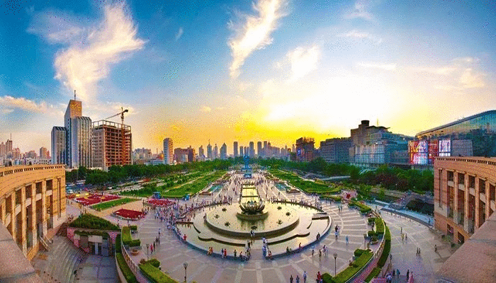 泉城廣場(chǎng)坐落于濟(jì)南市中心的繁華地帶,自西向東依次包括: 趵突泉廣場(chǎng)、濟(jì)南名士林、泉標(biāo)廣場(chǎng)、下沉廣場(chǎng)、頤天園及童樂(lè)園、濱河廣場(chǎng)、銀座購(gòu)物廣場(chǎng)、荷花音樂(lè)噴泉、四季花園、文化長(zhǎng)廊、科技館等十余部分。
